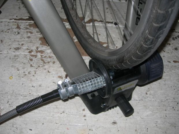 If you get hold of the Turbo Trainer, than you would not need to do to much to it in order to make the stand and attach the bike. Simply place the back wheel (bigger than 26″) of any bike to fit within the large threaded rod. It is very easy to do, just make sure it is tightened well. Then remove the fans (see images), because they are only for training purposes and not necessary here, since we will be making energy.